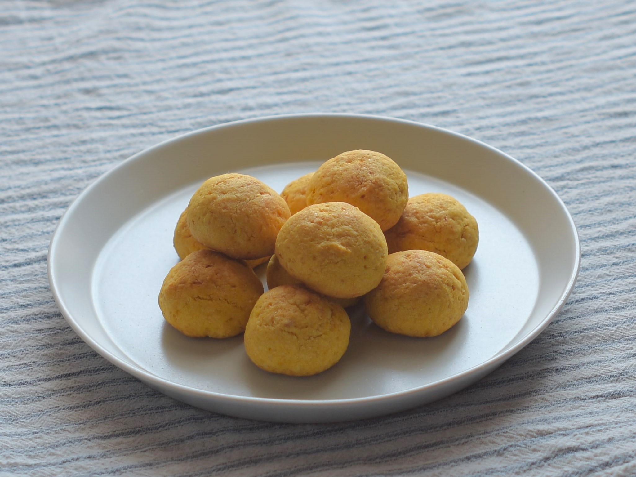 かぼちゃの黄色がきれいな、コロコロ丸いクッキー。やさしい甘さでしっとりした食感です。かぼちゃを加熱する以外は混ぜて焼くだけなので、どなたでもかんたん作れます。