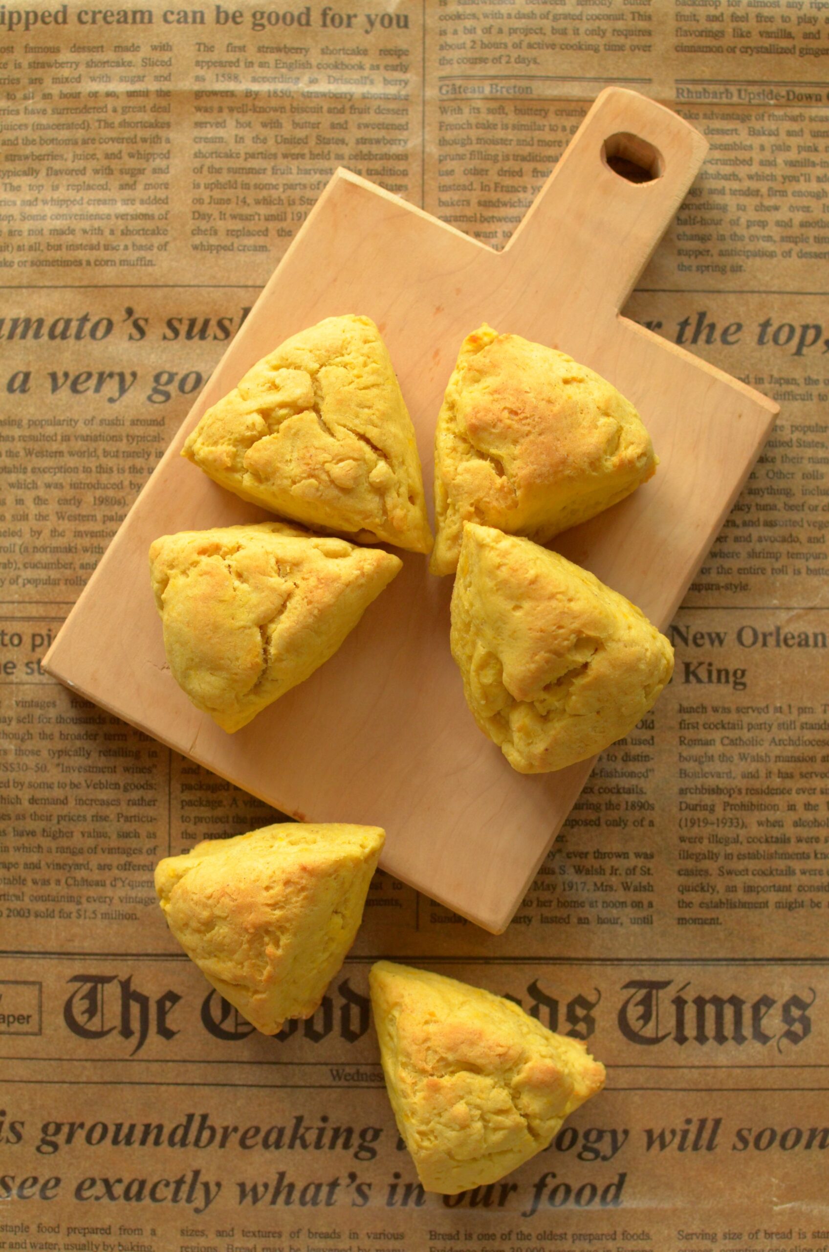 旬のかぼちゃとアーモンドペーストをたっぷり使ったスコーン。甘さ控えめでしっとりしているので、軽食としてもおいしく召し上がっていただけます。ハロウィンの日の食卓にも。